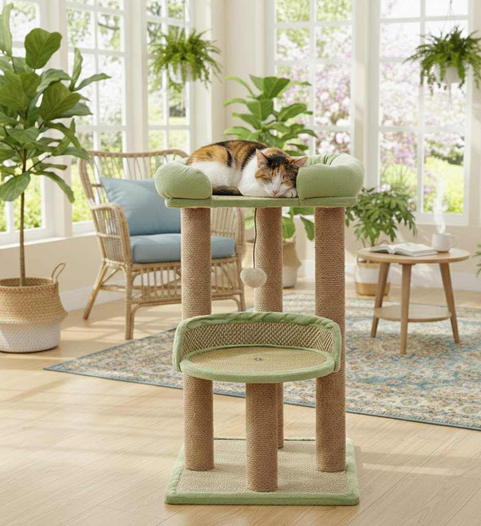 - Utilisation : Arbre à chat d’intérieur, parfait pour le quotidien.